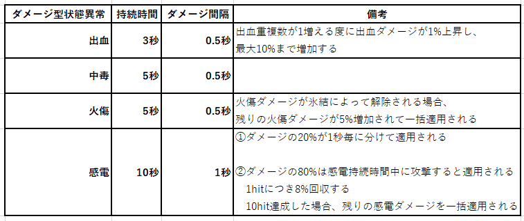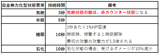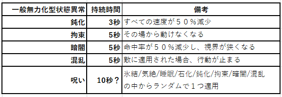また、後述の完全無力化型状態異常の兼ね合いにより、一括適用できないシーンが存在するため注意が必要。