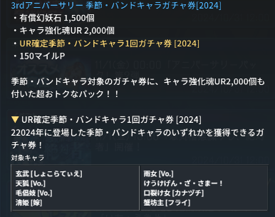 ③3rdアニバ季節・バンドキャラガチャ券