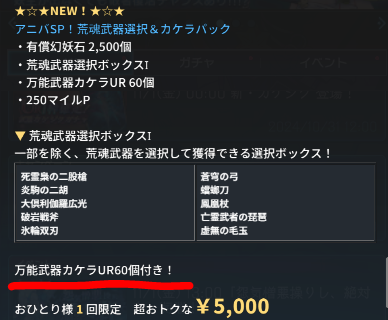 荒魂武器選択箱+万能武器欠片 5000円